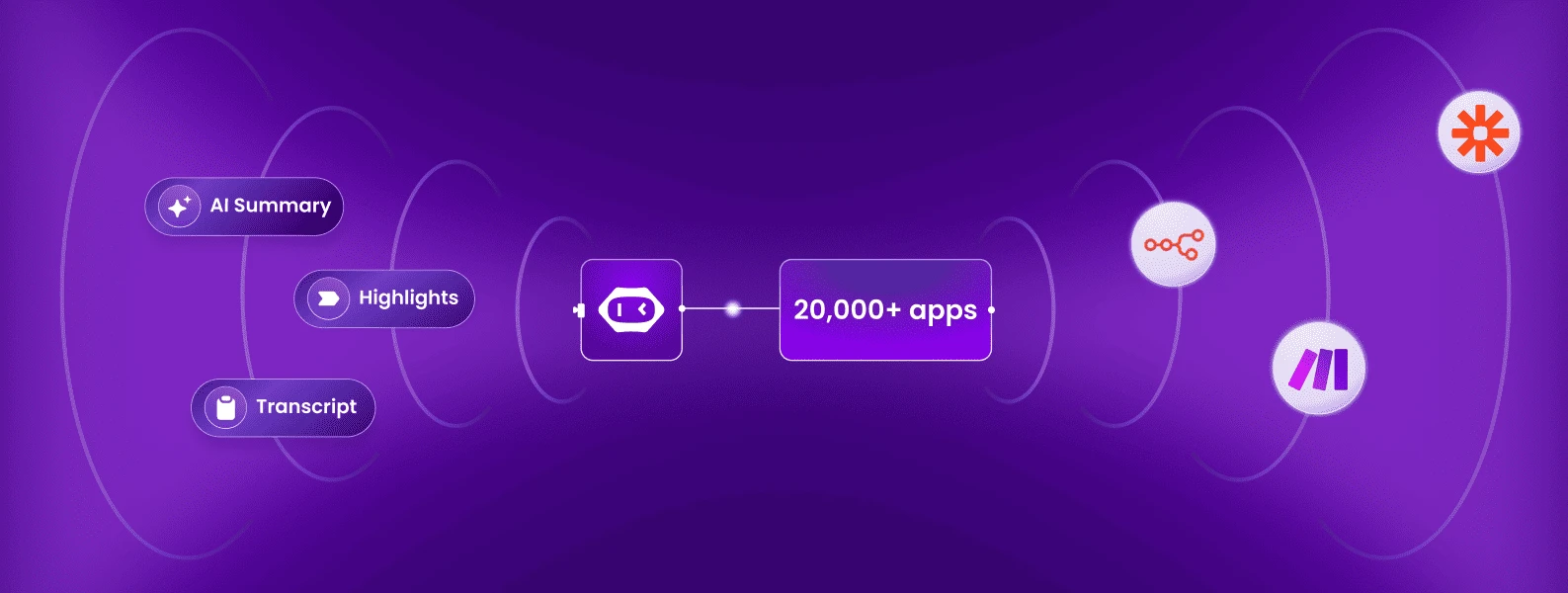 You can automatically push summaries, transcripts, or key moments into your CRM or communication tools to keep your team aligned and your systems up to date, without manual work.