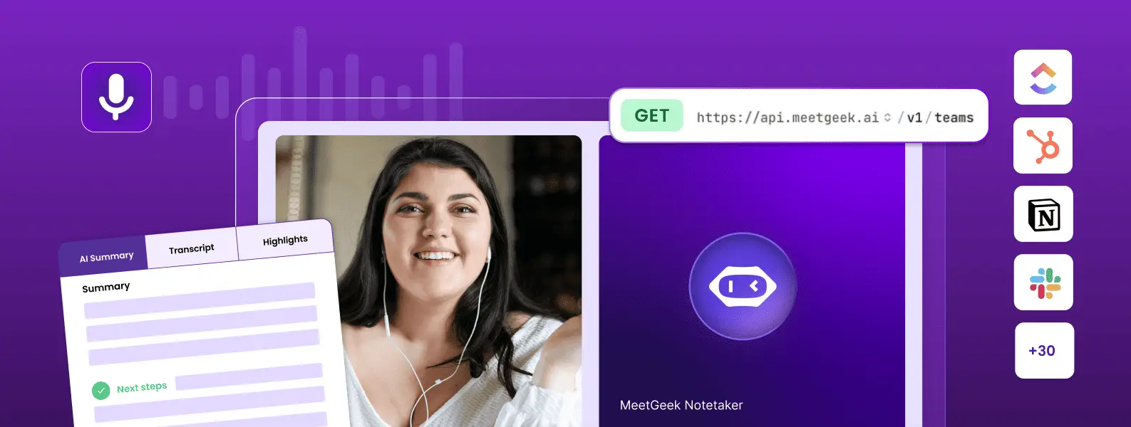 With integrations to enterprise tools like Salesforce, Slack, and Notion, MeetGeek ensures seamless workflow automation and alignment across the organization.