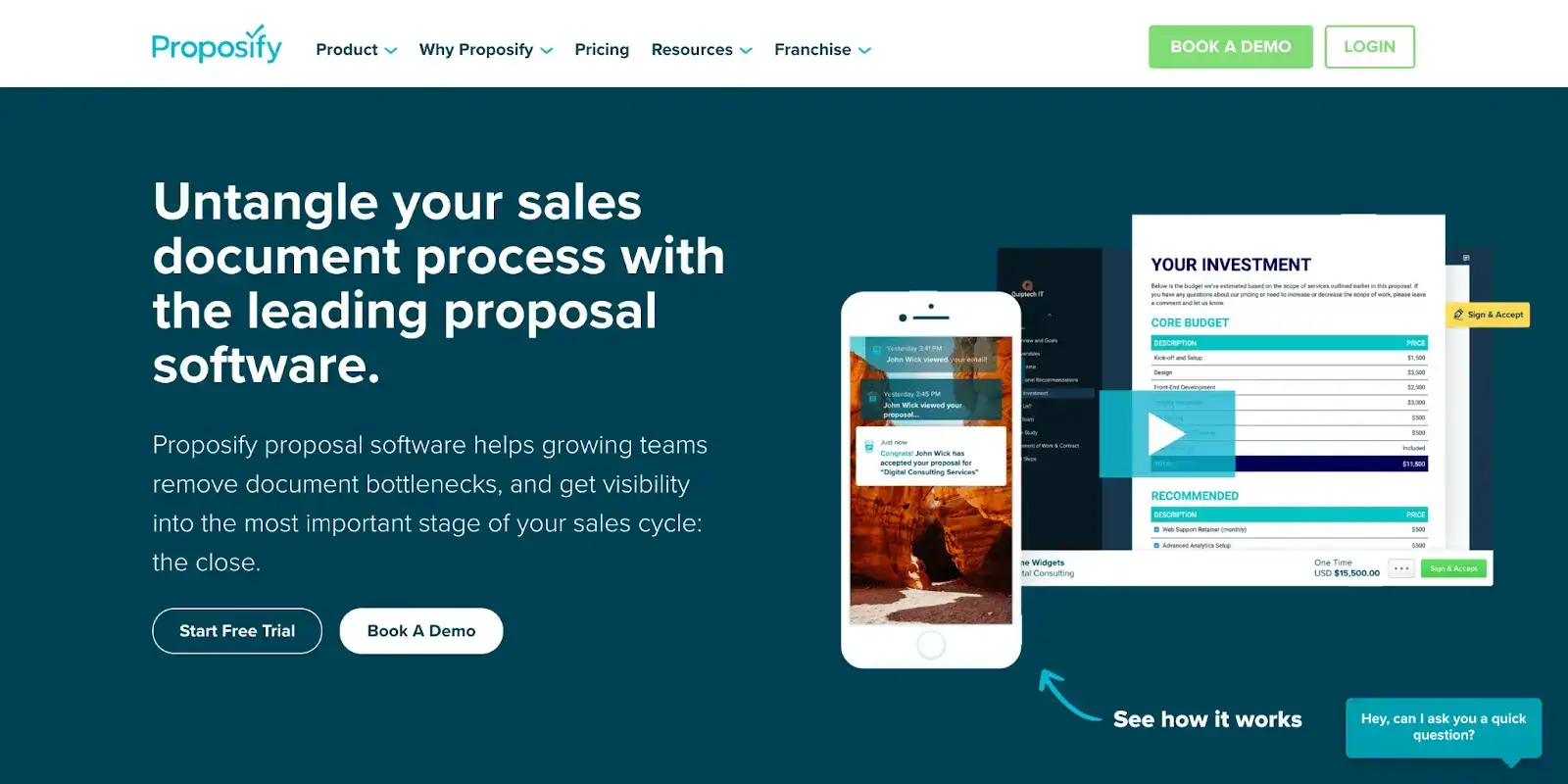 - Creates the whole proposal process a whole lot more professional by making it easier for clients to view, engage and sign documents.