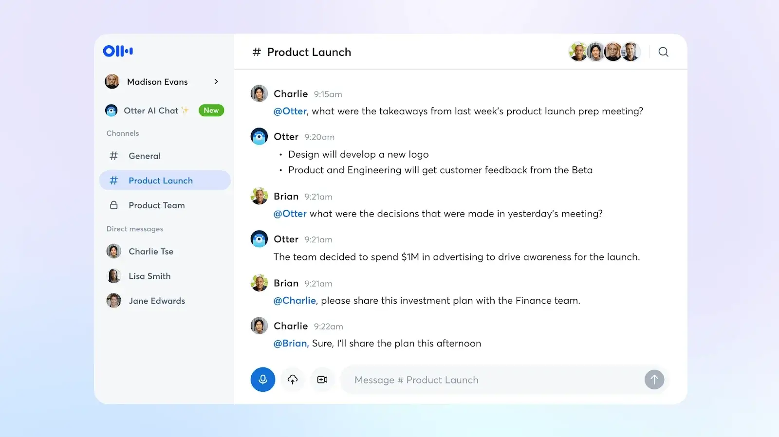 Otter is a popular AI transcription service that specializes in live meeting transcription and collaborative note-taking. The platform’s collaboration features allow multiple team members to view, edit, and annotate transcripts in real-time, making it a favorite among distributed teams who want to remain on the same page. Users can also use the Otter AI chat to talk directly with Otter.