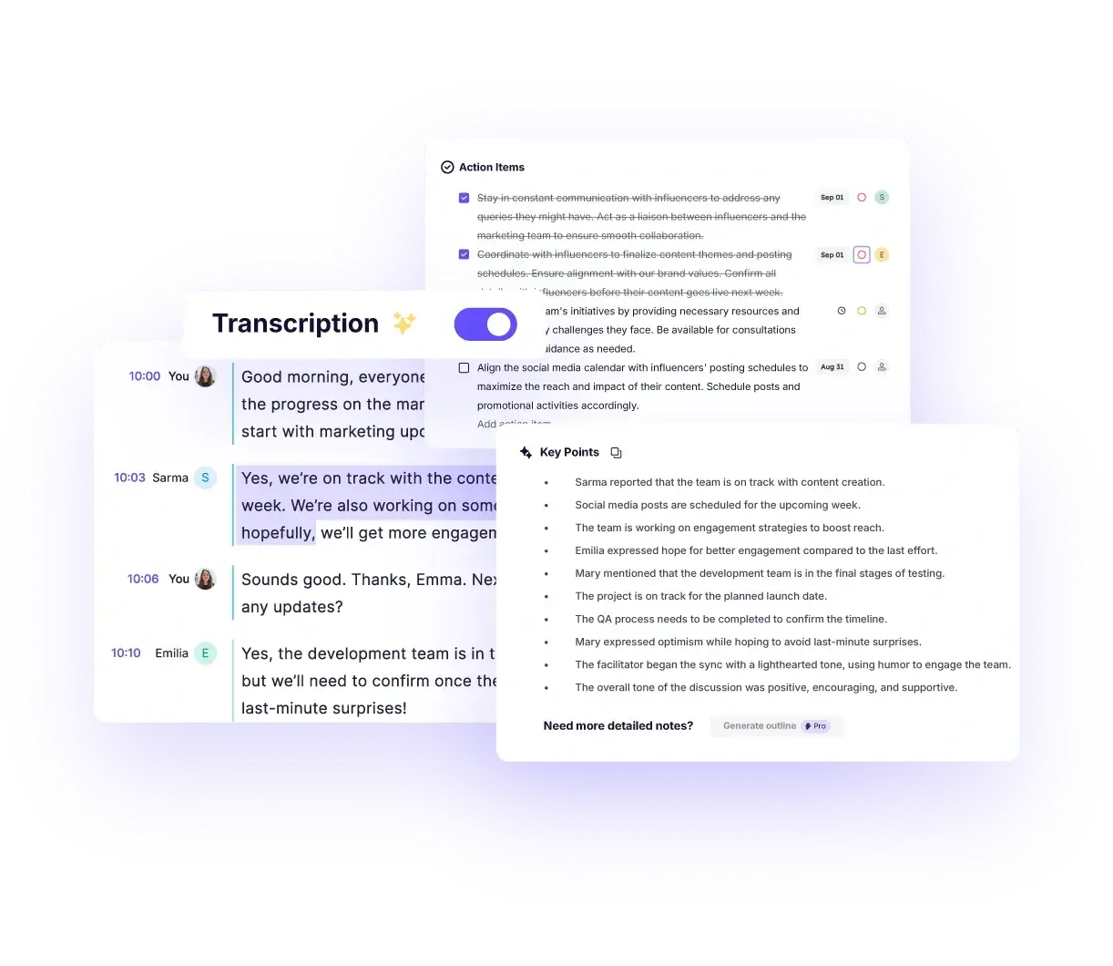 - Generates clear meeting minutes