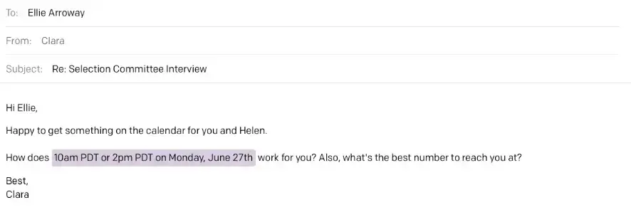 To improve the overall experience of your meetings, Clara also sends a feedback email to you and the interviewees after the meeting is over. With Clara, you can truly have a dependable and personalized personal assistant living right in your inbox.