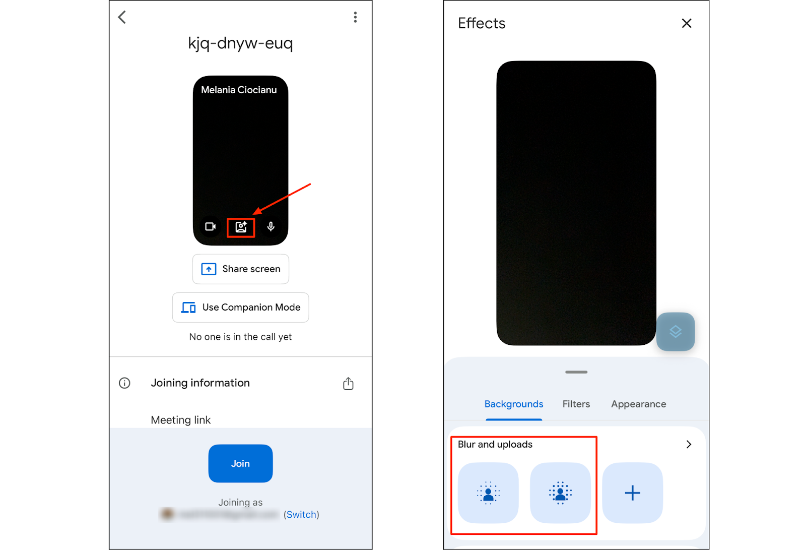 - Either tap Blur background or Background and effects, and from the panel, choose: