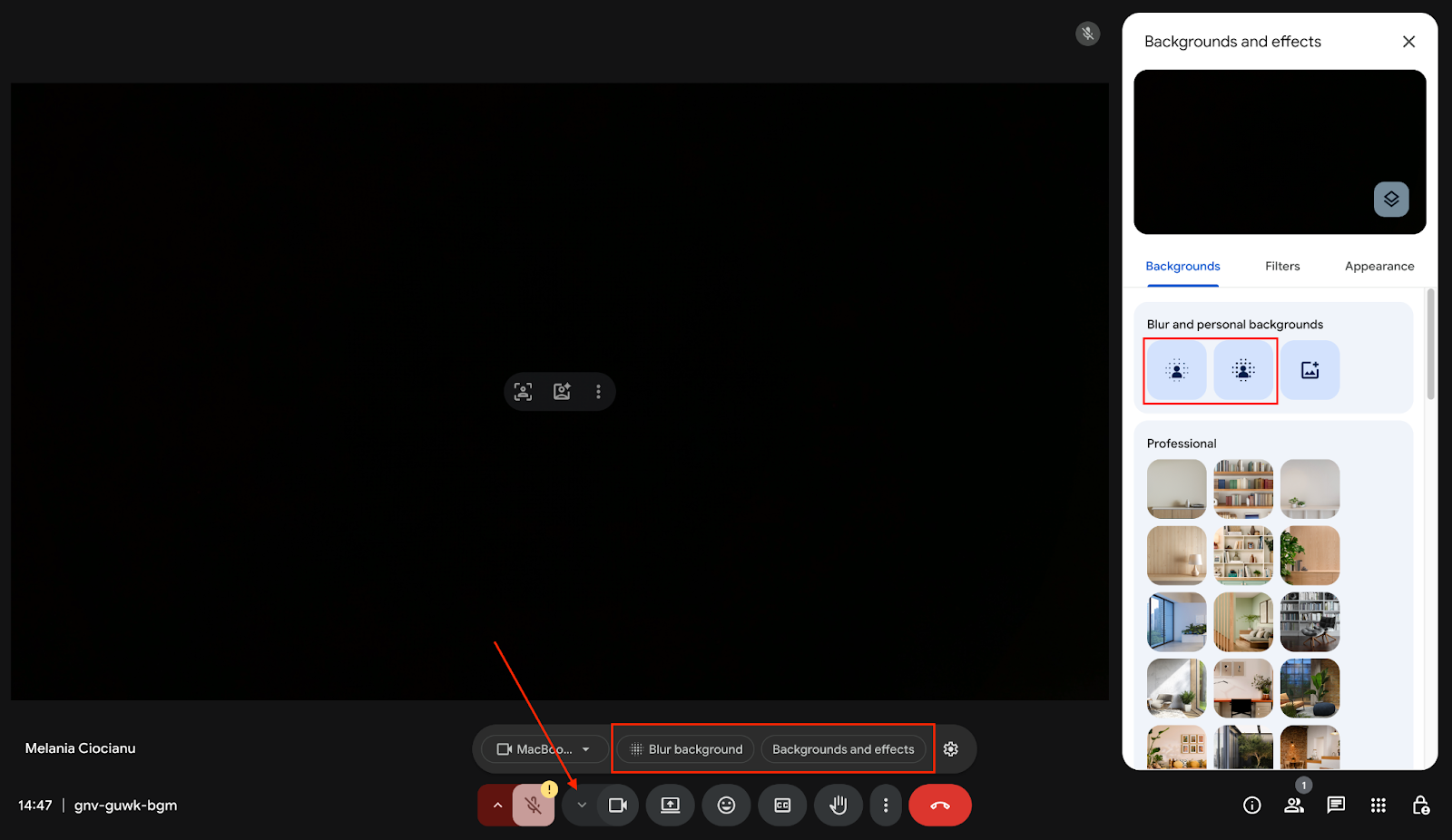 Google Meet offers background blur and personal backgrounds to help you control what other participants see behind you. This feature is ideal when you want to: