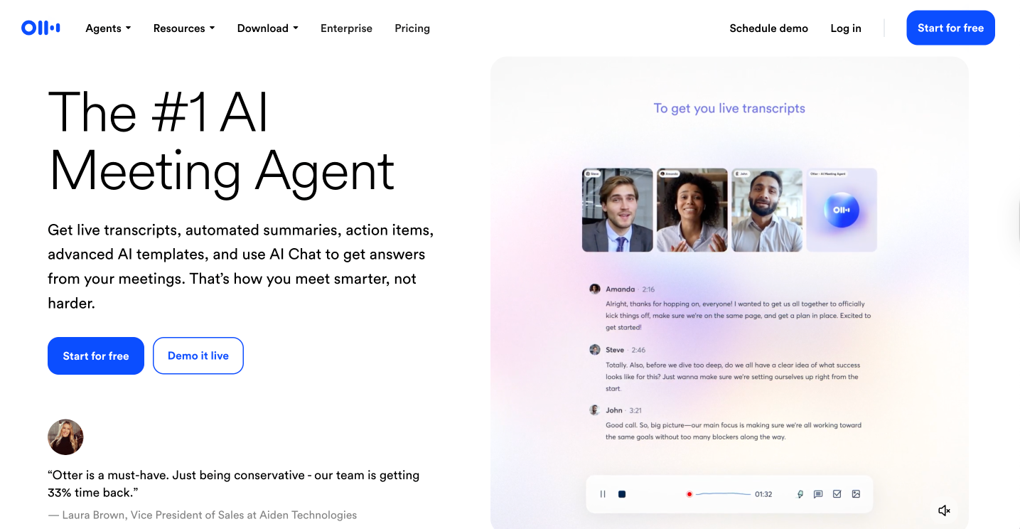 Otter is a meeting transcription and collaboration platform known for its features like live transcripts, speaker labeling, and shareable conversation notes.