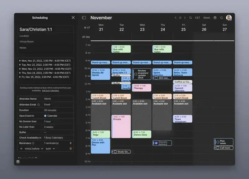 Features: SavvyCal is a new and popular option for creating and sharing your scheduling link with others. This tool allows users to create personalized links based on their roles, needs, and meeting types, ensuring a great experience for recipients.