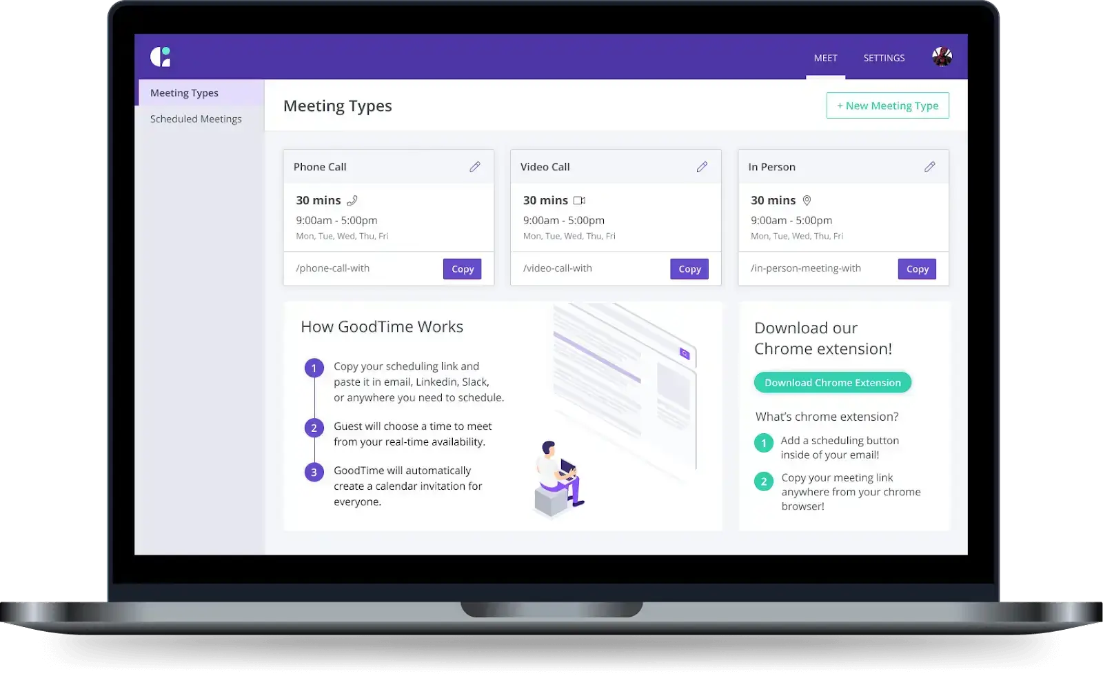 With GoodTime Meet, you'll look polished and professional to guests, and even the world-leading giants such as Airbnb, Zoom, Slack, and Shopify have trusted it for their interview scheduling — so you can be the next one to make the most of this incredible meeting scheduling app!
