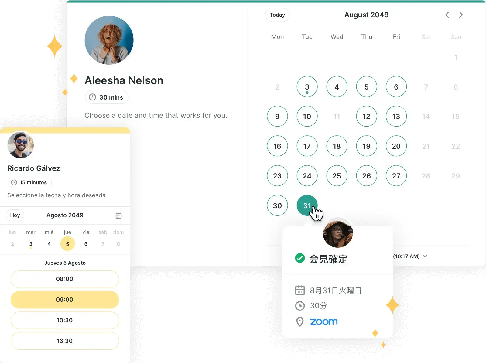 It's compatible with a large variety of calendars, such as Google, Outlook, iCloud, Zimbra, Zoho, and CalDAV. It even has Facebook Pixel integrations for tracking purposes. Plus, SimplyMeet.me can detect the local language of invitees and translate the pages accordingly.