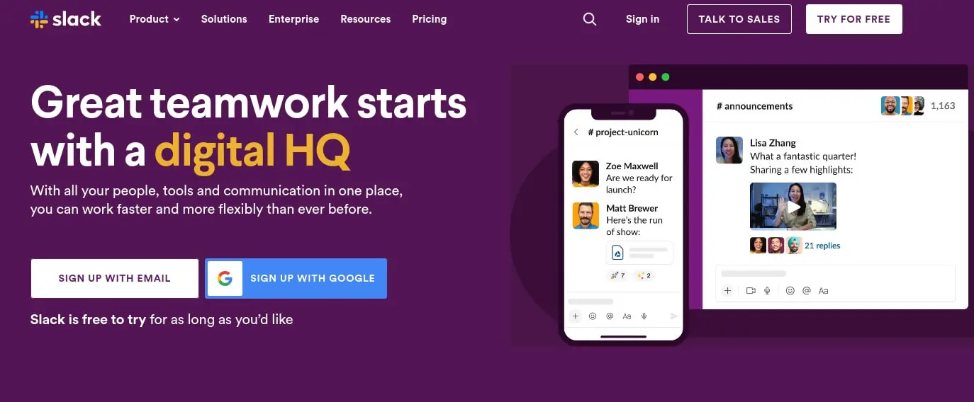 Slack is a communication tool that allows teams to easily collaborate and stay connected. Users can create channels for specific topics or projects and communicate with one another through direct messages or group conversations. Slack also offers a wide range of integrations with other tools, such as Google Drive and Trello, which allows users to share files and access important information directly within the platform.