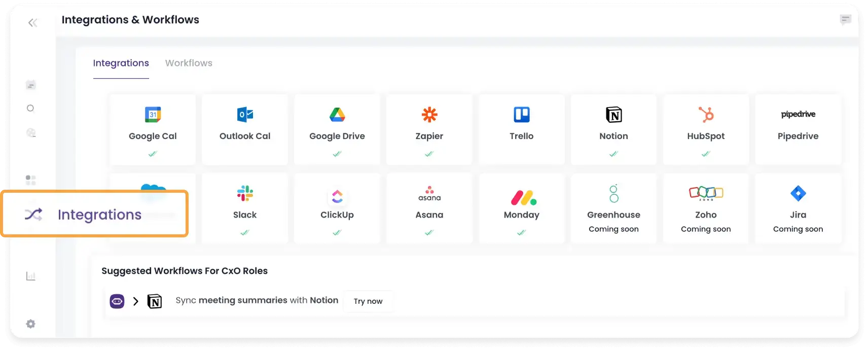Avec sa suite complète d'intégrations, MeetGeek vous permet d'exporter facilement toutes vos données de réunion vers votre logiciel de gestion de projet préféré, des espaces de partage de connaissances, des tableaux de gestion des tâches, etc.