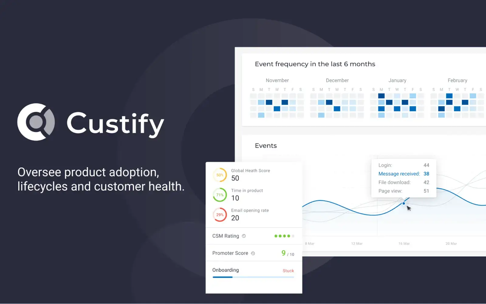 If you are looking for an all-in-one productivity tool designed specifically for CSMs, then Custify is a great choice. Custify is a comprehensive customer success platform that offers a wide range of features to help businesses manage and grow their customer base. From customer onboarding to ongoing customer success management, Custify provides an easy-to-use solution for each stage of the customer lifecycle.
