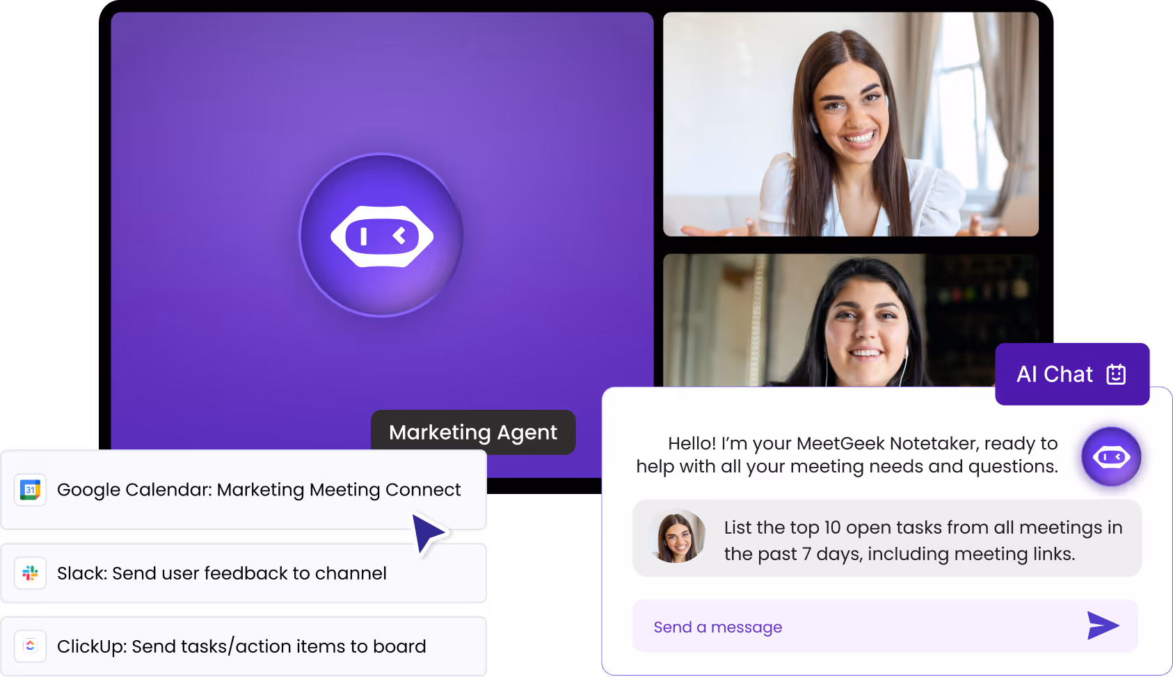 Ask MeetGeek to write reports, trigger tasks, or share updates: