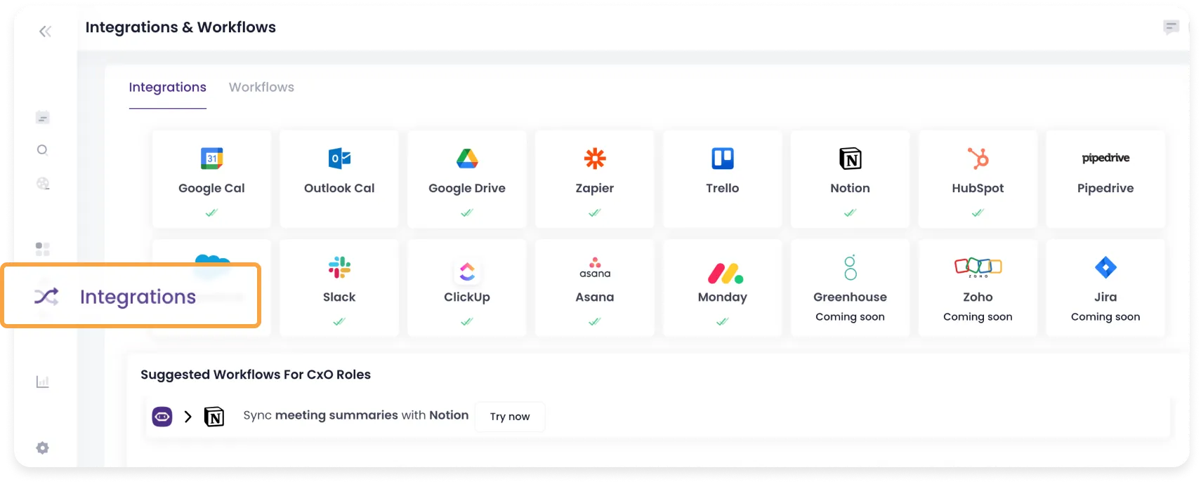 Com sua extensa conjunto de integrações, o MeetGeek permite que você exporte facilmente todos os dados da reunião para o seu software de gerenciamento de projetos favorito, espaços de compartilhamento de conhecimento, conselhos de gerenciamento de tarefas, etc.