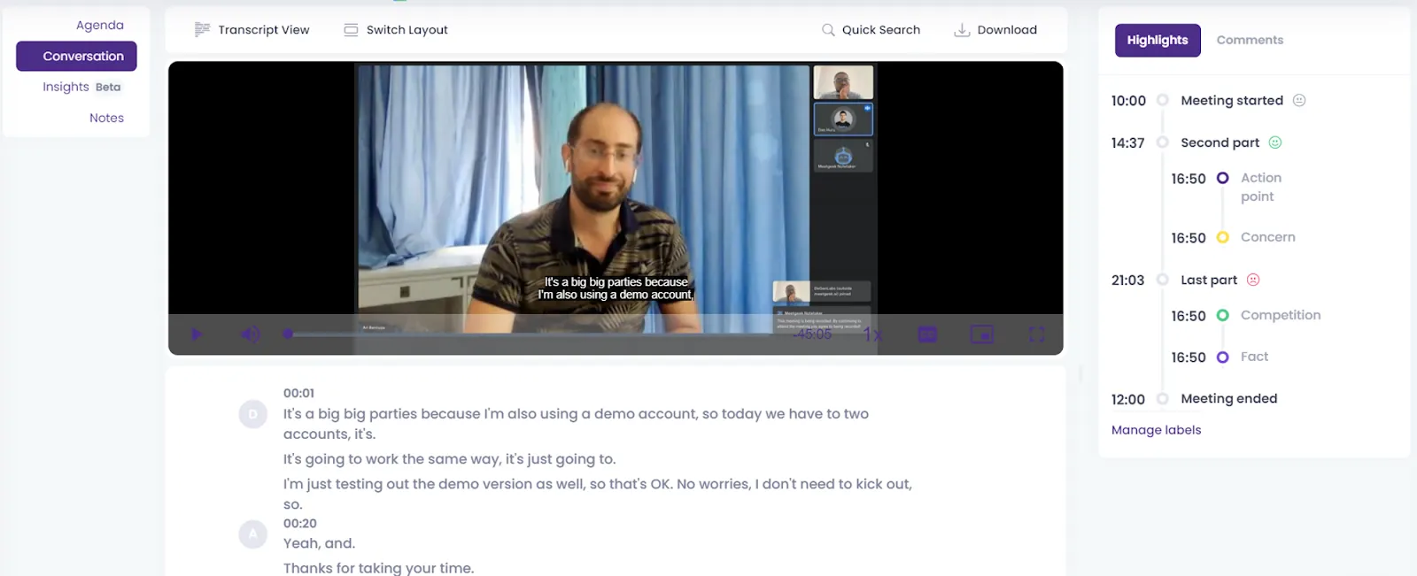 - Ter uma transcrição escrita facilita a criação de notas de reunião.