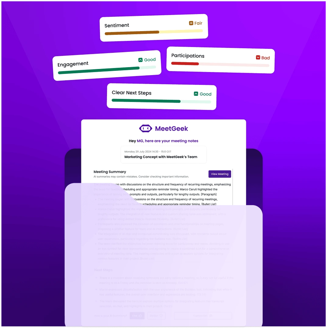 MeetGeek automatically ensures that your recordings, transcripts, and meeting data remain compliant with data protection laws like GDPR.
