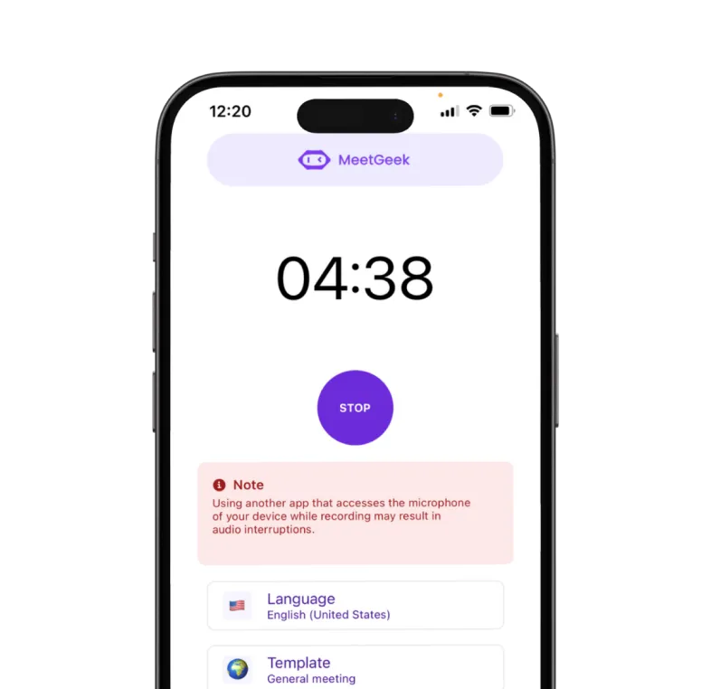 Use o app móvel da MeetGeek para gravar ou enviar arquivos e transcrever automaticamente conversas presenciais.